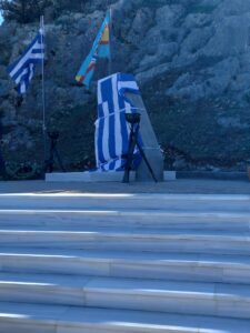 Ας υποκλιθούμε νοερά στη μνήμη του και στο πέρασμά μας από εδώ, ατενίζοντας το μνημείο, να θυμόμαστε τις αξίες του όρκου και του καθήκοντος, να αισθανόμαστε υπερήφανοι και να ψιθυρίζουμε τον στίχο του Ανδρέα Κάλβου…..θέλει αρετή και τόλμη η ελευθερία.