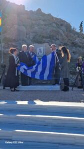 Η επίσημη ομιλία των Αποκαλυπτήριων του Μνημείου του πεσόντος Αεροπόρου, Σμηναγού Μιχαήλ Παπαμιχαήλ από τον Αντιπτέραρχο ε.α. πρώην Διοικητή της Σχολής Ικάρων κ. Γεώργιου Φασιλή