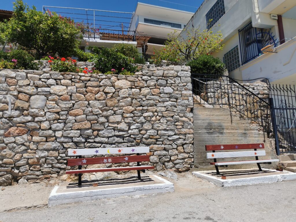 Όλα τα παγκάκια με τις δεκάδες αναμνήσεις των συμπολιτών μας συντηρήθηκαν με έξοδα της Κοινότητας και βάφτηκαν από τον Ιωάννη Ψαθά εθελοντικά.