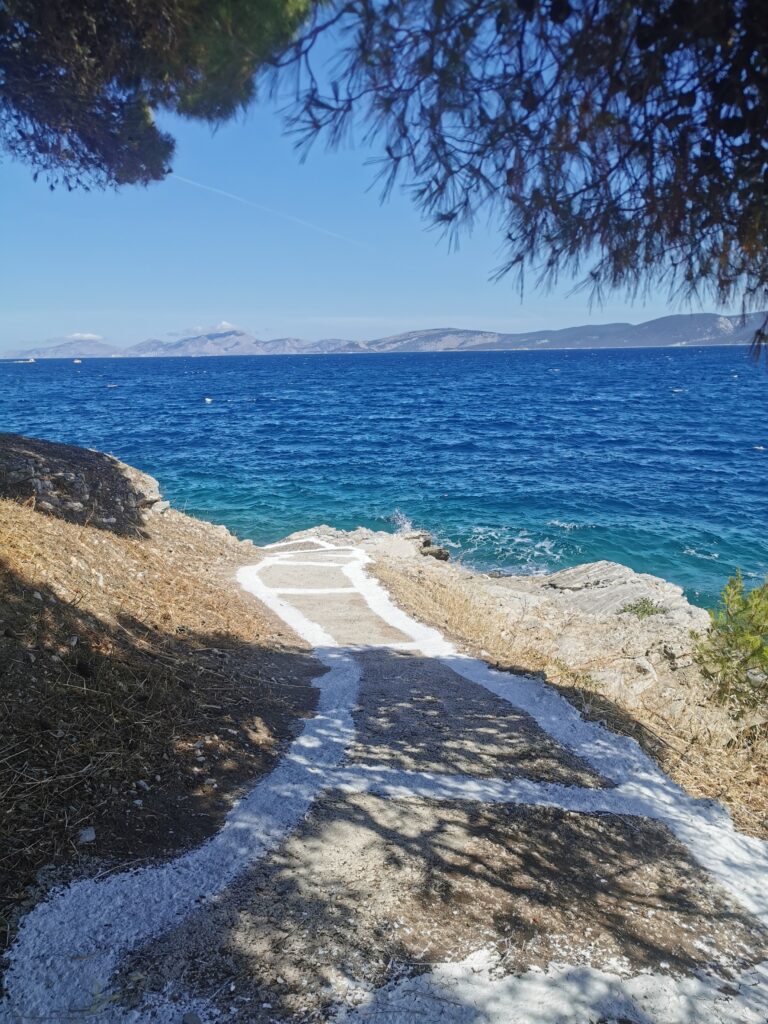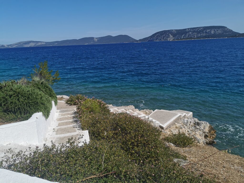 Το ίδιο μικρό συνεργείο σε απόλυτη συνεργασία Λιμενικού Ταμείου και Κοινότητας διαγραμμίζει τις απαγορευτικές λωρίδες επί της Χερσαίας Ζώνης