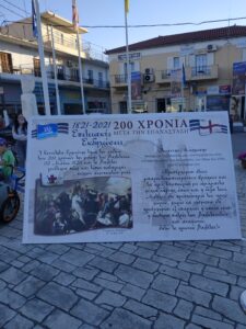 Επίσης τον αγώνα των προγόνων μας για Εθνική ανεξαρτησία Ελευθερία και Δημοκρατία που πολλές φορές η κατάρα των εμφυλίων συγκρούσεων και του διχασμού τον αμφισβήτησε και δοκιμάστηκε στα επόμενα χρόνια του αγώνα και στις επόμενες γενιές των Ελλήνων.