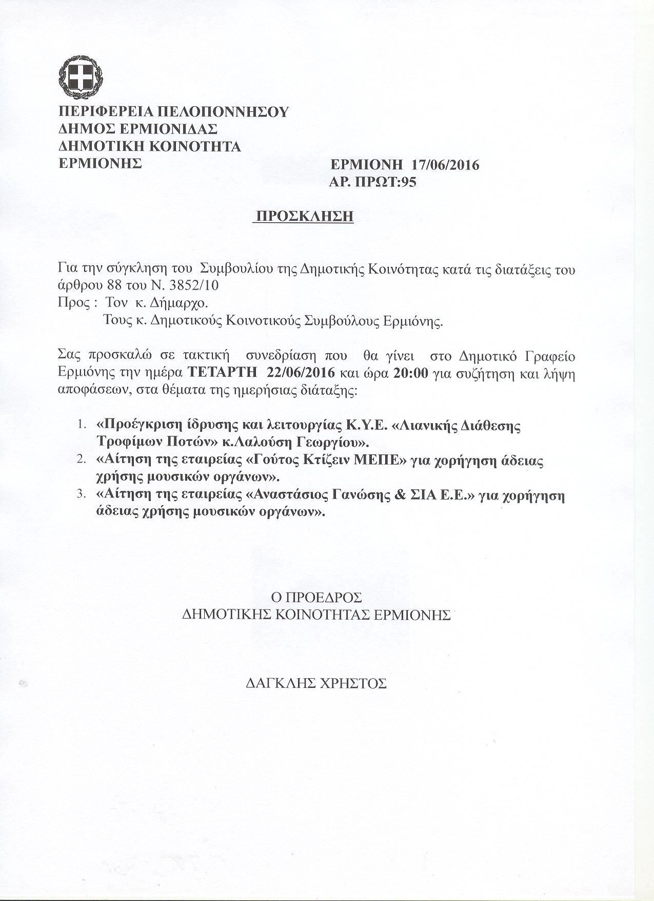 Δ.Κ. Ερμιόνης – Πρόσκληση