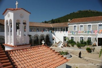 Εδώ υπάρχει μια σημαντική βιβλιοθήκη, η «Καραμάνειος Βιβλιοθήκη», η οποία φέρει το όνομα του ιδρυτή της, Μητροπολίτη Ύδρας Προκοπίου Καραμάνου και αποτελεί το κόσμημα της μονής. Περιλαμβάνει σπάνιες και παλιές εκδόσεις κλασσικών, βυζαντινών και εκκλησιαστικών συγγραφέων, σειρές παλαιών περιοδικών και πολλά ξενόγλωσσα συγγράμματα. Σε χώρο της Βιβλιοθήκης φυλάγεται και το αρχείο του Εμμανουήλ Βούλγαρη, αδελφού του Πρωθυπουργού Δημητρίου Βούλγαρη, έγγραφα που περιέχουν σημαντικά ιστορικά γεγονότα της περιοχής, περιόδου 1800-1882.
