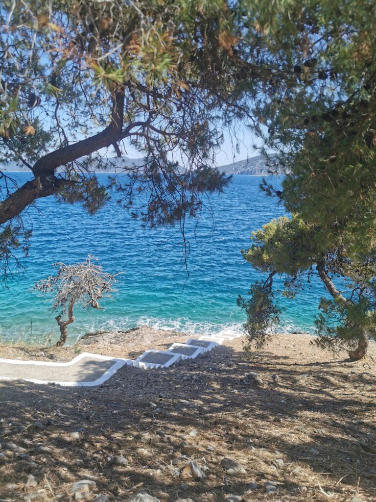 Το ίδιο μικρό συνεργείο σε απόλυτη συνεργασία Λιμενικού Ταμείου και Κοινότητας διαγραμμίζει τις απαγορευτικές λωρίδες επί της Χερσαίας Ζώνης